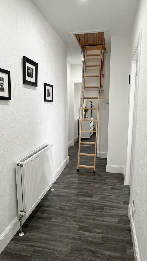 The first floor offers excellent potential for development, with a floored loft extending the full length of the property